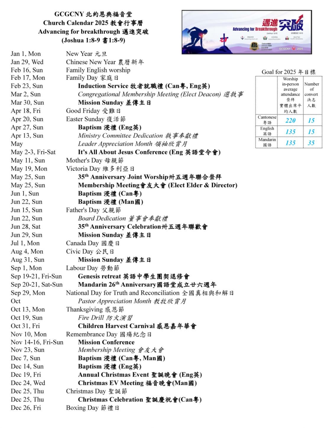 2025 教會行事曆